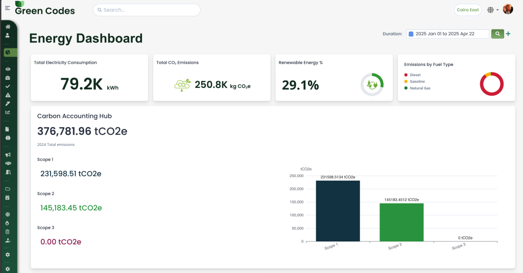 We are excited to announce the official launch of the Green Codes Sustainability Module — designed to help organizations track, manage, and improve their environmental performance with ease and precision.