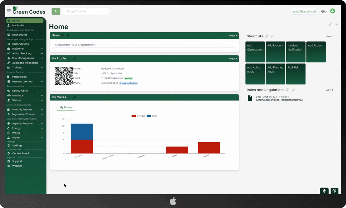 Green Codes HSE Software offers a clean, user-friendly interface that makes managing safety, compliance, and sustainability effortless. No steep learning curve — just intuitive digital tools designed to help your team work smarter, faster, and more efficiently.
